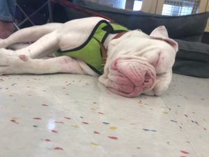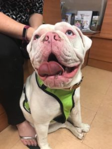 Hi, my name is Crinkles. Well, that’s what they call me, but honestly, I don’t care what you call me ‘cause I was born deaf. I am a little over 1 yr old and about 62lbs. I’m a purebred female Olde English Bulldog and fully vetted. I am house broken and crate trained. I am good with most dogs, cats, and kids. But here’s the thing; I can be a bit of a bully. Because I’m deaf it takes me some time to settle into a new homes routines. And I can be a bit of a mess while I’m settling. But after a few days, when I understand that you are my new family and I know the routine, I am awesome! I am super smart and love to learn new things. I know I can be stubborn and a typical bulldog but I promise that if you love me enough to bear with my training and settling in period, I will be the best girl ever! I am really hoping that someone out there loves my smooshy face enough to put in the work to show me I am worthy of a forever home. Is that you?