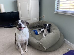 Most dogs take an average of two weeks to adjust/decompress, but some may require more time. During these two weeks, your new dog should be kept separate (in a crate or baby-gated room) from all other animals in the house. As the dog’s new “person”, you should be providing only the basics: food and water, safety, shelter, human interaction/bonding, and entertainment (walks and playtime). This encourages your new dog to depend on you as the sole provider and builds a balanced relationship of bond, trust, and respect to learn to look to you for direction. Once the balanced relationship is built, it will be easier to guide your new dog through difficult situations such as learning to be with the resident dog (if any), and greeting new people.