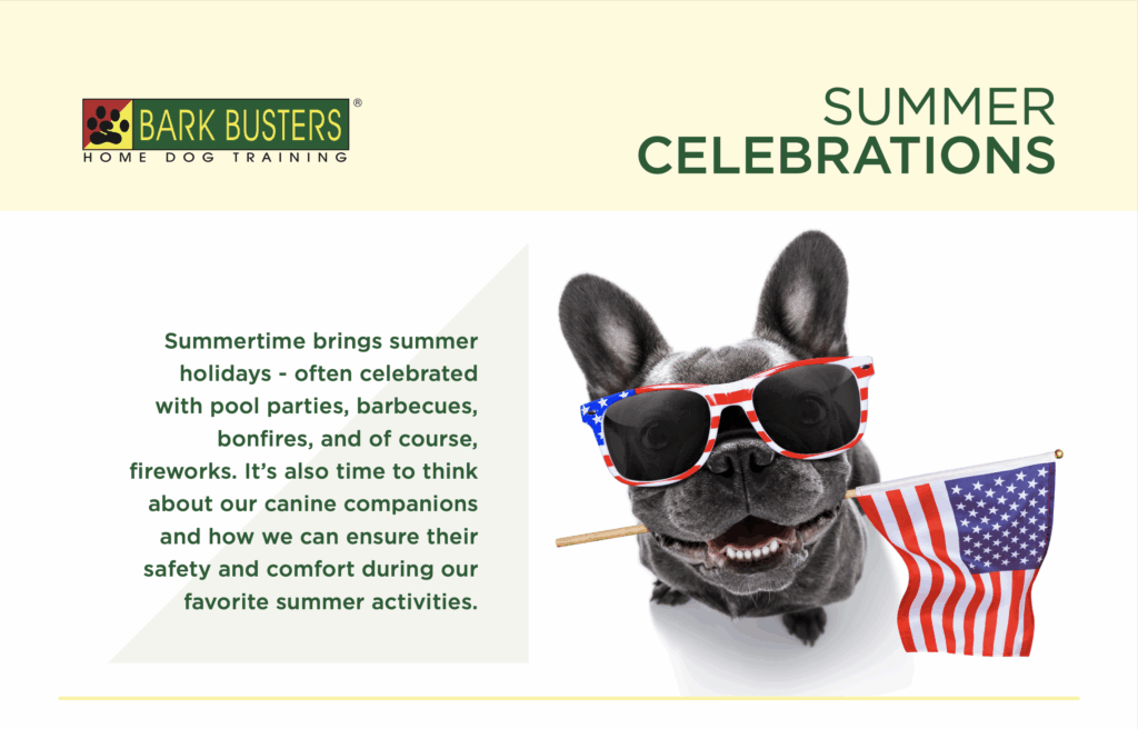 If you’re attending an event with fireworks, leave your dog at home and safely inside. Keep windows and curtains closed to reduce noise and bright flashes. Consider leaving the TV on or calm music playing at a normal volume to help distract your dog and help them relax.