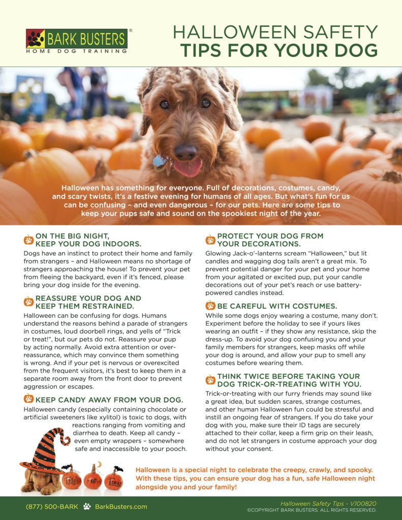 The best thing you can do for your dog when he is feeling unsettled by Halloween activities is to act as you normally would around your dog. By over-reassuring your dog or giving him an unusual amount of attention, you inadvertently can communicate to him that because you are acting differently, there must be something to worry about.