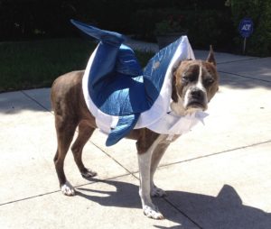 Your dog may see his family members as strangers once they don their Halloween costumes. Before the kids put them on, allow your dog to scent the costumes. If your costume has a mask, keep the mask off when you are with your dog because dogs can become confused when they can’t see our faces.